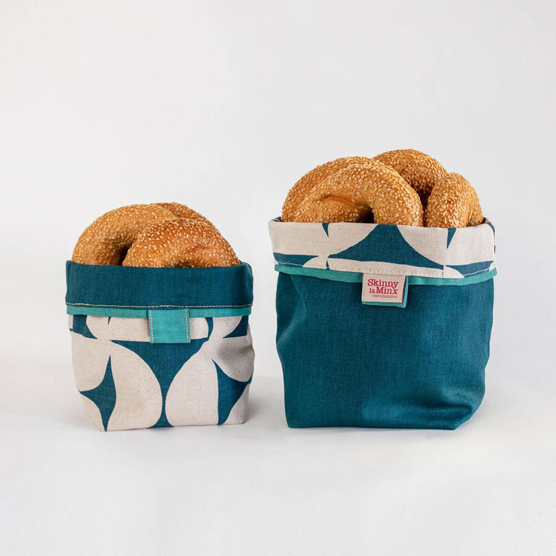 This soft bucket is completely reversible, which makes this all-purpose soft container twice as useful, with a pop of colored piping to add zing. Available in two sizes. Buy matching pairs or go wild and mix and match the colors and patterns that make you happy.